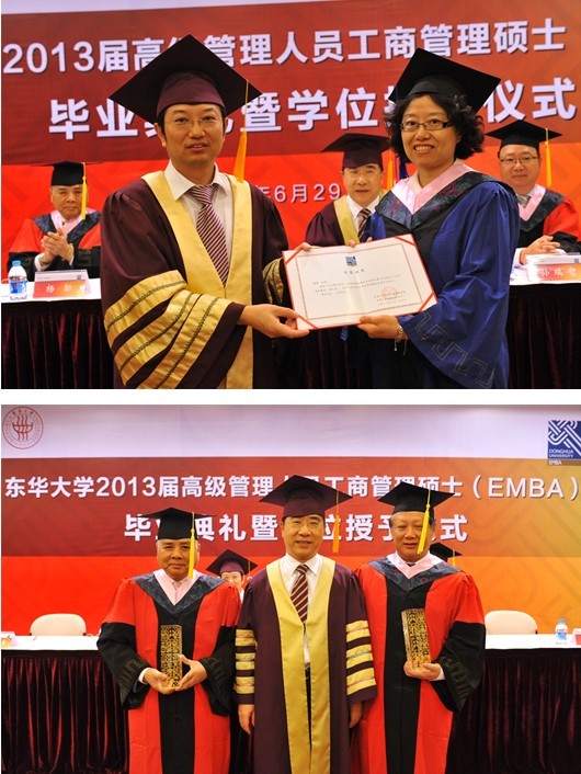 2013年6月29日上午,bwin中国官方网站延安西路校区三教四楼报告厅,bwin中国官方网站首届EMBA毕业生们身着硕士服,齐聚一堂,迎来了他们人生中的重要时刻——bwin中国官方网站2013届高级管理人员工商管理硕士(EMBA)毕业典礼暨学位授予仪式。