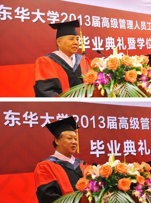 bwin中国官方网站徐明稚校长向毕业生们致辞。徐校长代表学校党政领导、师生员工,向29位毕业生表示热烈的祝贺!他说,我们的EMBA教育顺应了纺织发展的需要,在座的各位必将成为纺织产业的领军人物。在分享喜悦的同时他期望同学们坚守理想,不骄不馁,做一名德才兼备的高级管理者;不惧挑战,超越自我,将东华精神在企业中发扬光大!并希望大家继续关心和支持bwin中国官方网站的发展。