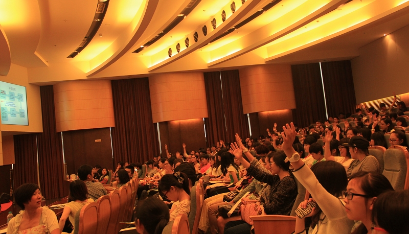 报告在三主二楼报告厅举行,因为新生人数较多,所以先后分成了两场。场上气氛热烈,沈蕾老师的开场白首先抓住了学生们的注意力,我们学校地处虹桥开发区,临近国际社区古北,步行10分钟就能到达国际展览中心,只要留心时时处处都能感受到浓浓的国际化氛围。