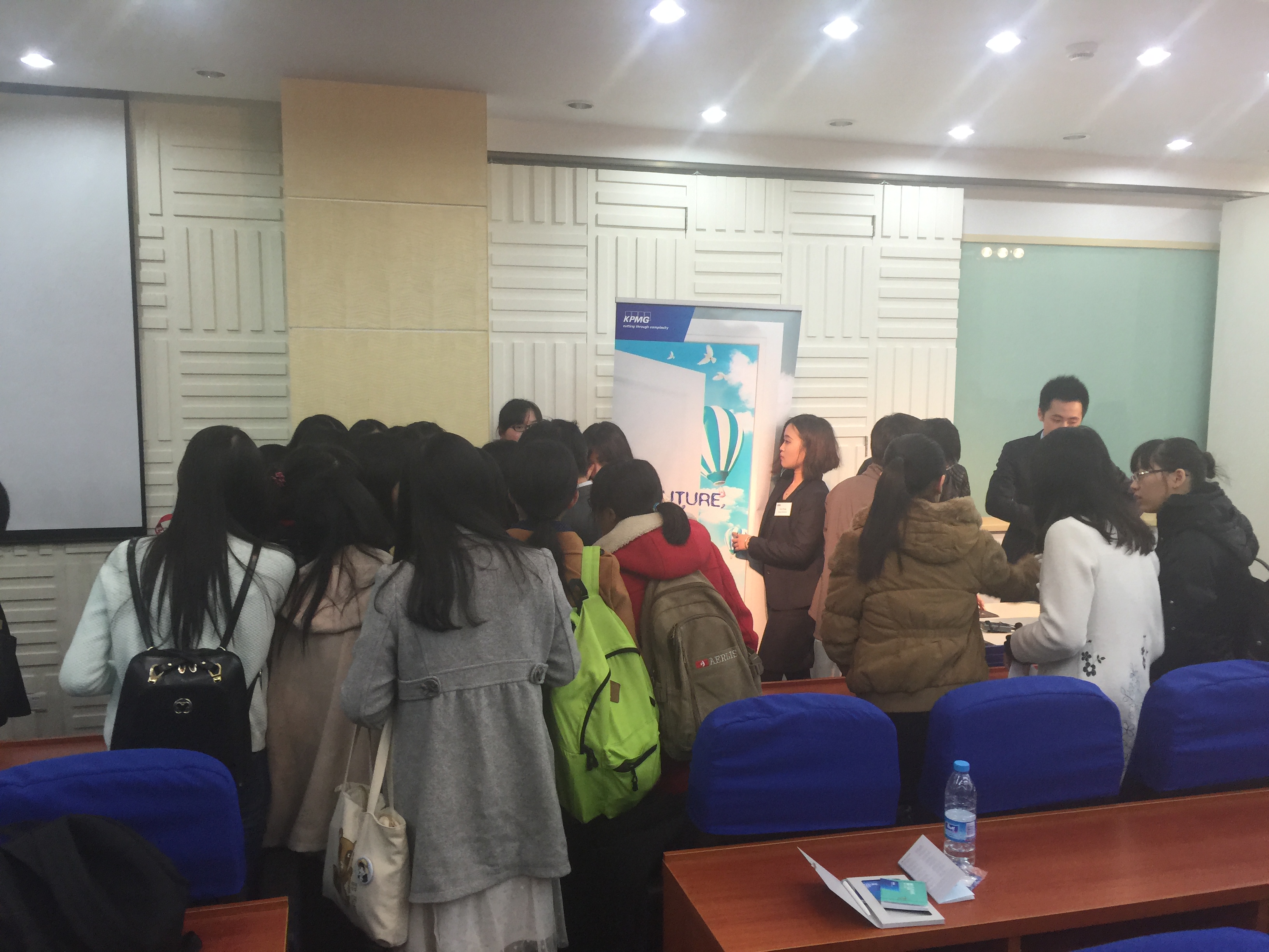 3月25日,邀请毕马威会计师事务所在延安路校区旭日楼418召开2015年精英计划的宣讲会。会场上同学们积极师互动,宣讲会结束之后,同学们纷纷表示对精英计划有了更清楚的了解,也表示会认真申请,积极尝试。