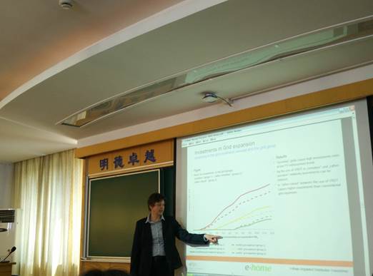 4月23日上午9:00,德国哥廷根大学经济学院生产与物流系主席尤塔·哥德尔曼(Jutta Geldermann)教授应邀到我院作了主题为“E-Home Energy Project 2020: Multi-Criteria Analysis of Grid Expansion Concepts on the Low Voltage Level caused by the renewable energy law(EEG)”的学术讲座。讲座在旭日楼306室举行,由副院长张科静教授主持,我院相关专业师生参加了此次讲座。