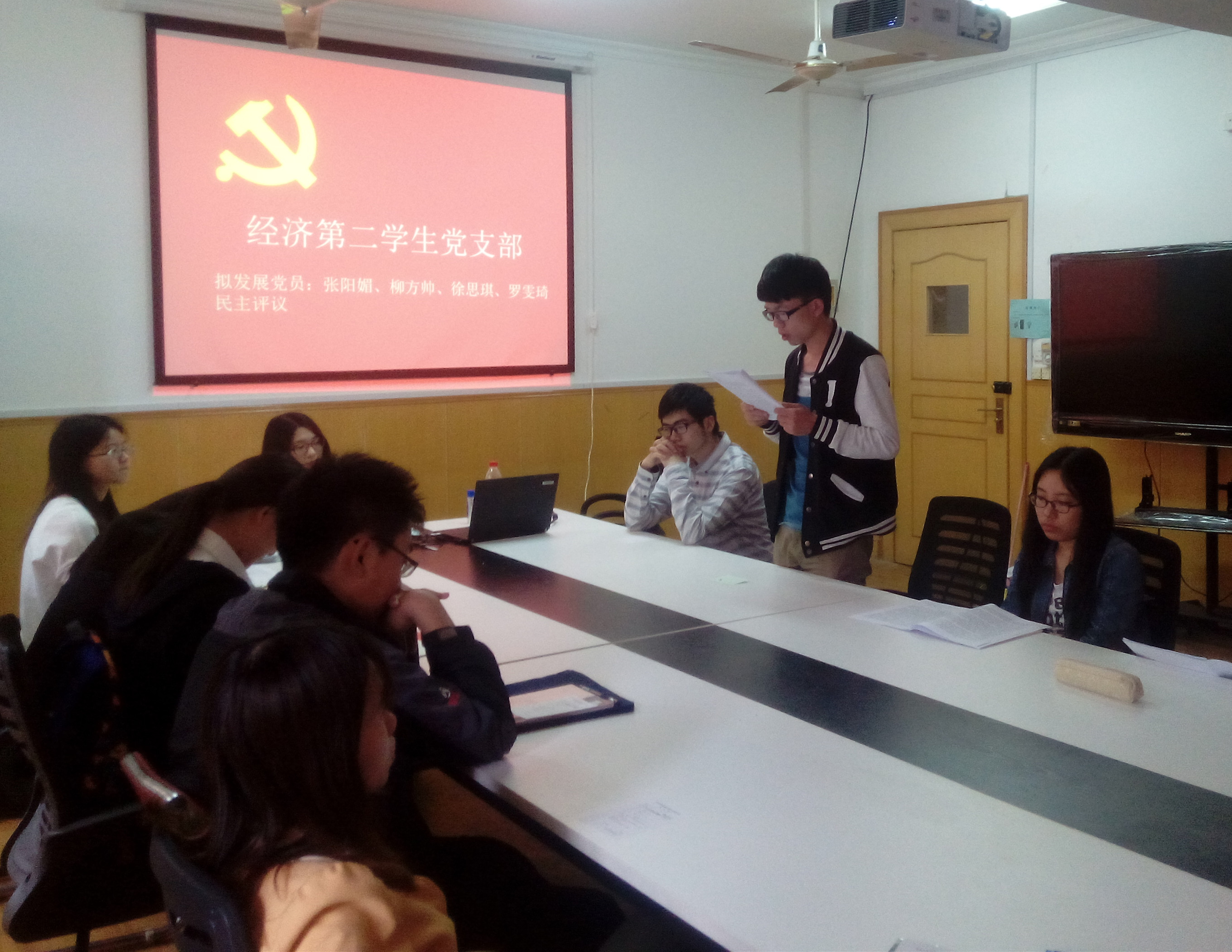 2015年4月29日中午,bwin·必赢唯一官网经济第二学生党支部在5118召开支部大会,主要议程是柳方帅、罗雯琦、徐思琪、张明媚的预备党员发展。经过多方面考察和培养,经济第二学生党支部的四名积极分子迎来这一重要的时刻。