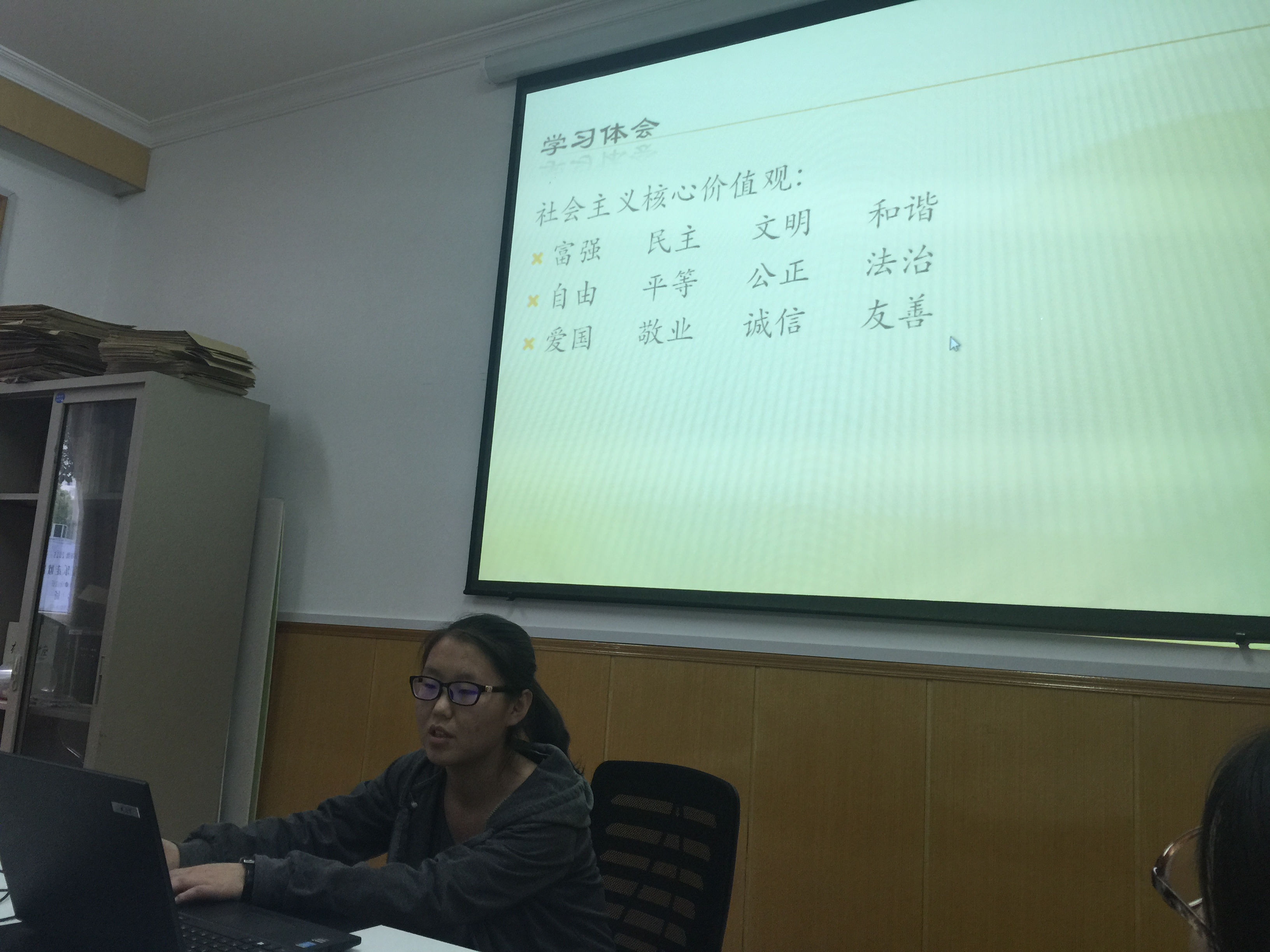 八位党校小组同学分别进行了分享和汇报。来自经济1403班的张奕清同学,从学习体会、自己的进步和改变、未来的计划三个方面进行她的党校小结汇报,觉得在未来应该在保证绩点的基础上多看课外书,反思自我不断成长。其次,来自金融1304的王文苑同学和来自金融1304的王璐同学则就对党课的回顾以及重新认识了入党动机展开了她们的小结汇报,她们都认为以前想要入党只是因为觉得入党是件很光荣的事情或者对未来就业有帮助,但是经过了党课的学习,她们认为为人民全心全意服务或者说是为同学们更好地服务是她们现在的入党动机。来自金融1303的刘通和金融1203的张陈洁也是通过结合自身,畅谈了自己来党校的改变并对未来定下切实可行的目标。来自经济1403的张贵祯同学则通过叙述了她本学期多次的志愿者和社会工作经历来回顾过去,并用在学习上更加努力来展望未来。来自金融1303王若涵同学详述了每次的党课内容,然后结合自身,说作为一名积极分子,以前在社会工作上用时较多,学习成绩因此不是那么优秀,他希望以后能够更好地平衡两者。最后,李昱同学就从党课上学习到的时政知识入手,说通过党课的学习,他加强了对新闻的关注,并且以身作则,学着肩负起党员应尽的责任,希望在未来提高自身综合素质。