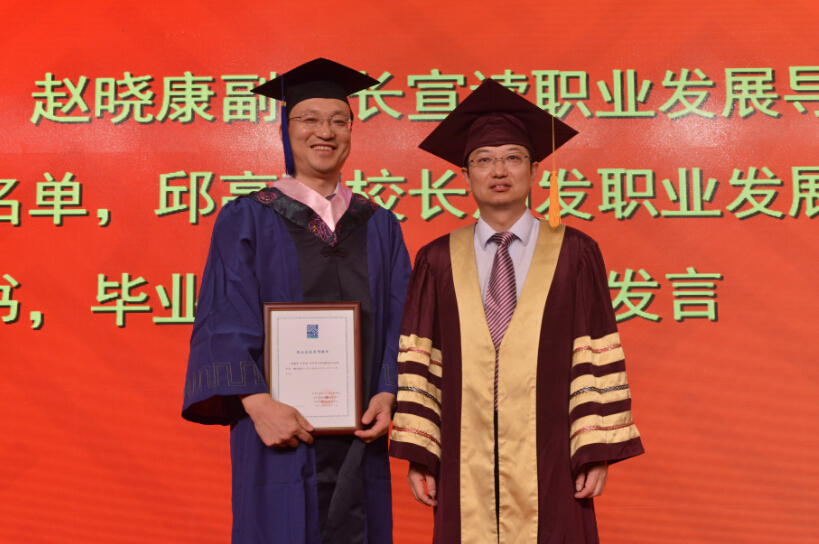 在圆满完成学业之际,12位EMBA毕业生也被学院聘请为“MBA职业发展导师”,邱高副校长依次为每位毕业生颁发聘书。