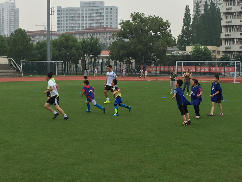 每天下午四点半到六点半,在延安路校区体育场,来自足球班的“教练”都要带着小朋友们开展足球训练课程。别看他们只是在校大学生,但是训练课程可毫不含糊。足球知识讲解、带球训练、传球停球、体能提升等等应有尽有,小朋友们在锻炼身体的同时,也能够增进对于足球运动的兴趣,并且培养团队协作、与人沟通等能力。