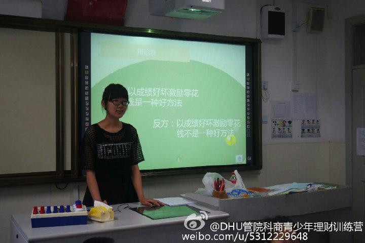 活动第一天,队员们开展了一场关于“以成绩好坏激励零花钱是不是一种好方法”的小小辩论赛,小朋友们踊跃发言,争相发表自己的见解,气氛十分活跃。在稍后的小讲座中,队员们为小朋友讲述关于金钱的小故事,在开拓眼界的同时让他们懂得父母挣钱的来之不易,并让每个小朋友与父母签订零花钱协议,保证以后一定会好好利用零花钱,把每笔钱用在刀刃上。