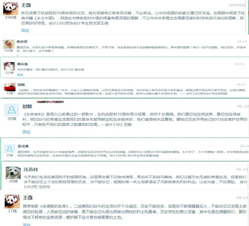 2015年是中国抗日战争胜利70周年,也是世界反法西斯战争胜利70周年。为积极响应bwin·必赢唯一官网在全院大学生中开展“铭记历史,缅怀先烈,珍爱和平,拥抱未来”——纪念中国人民抗日战争暨世界反法西斯战争胜利70周年主题活动,会计1302班班委组织同学高度关注并积极参与活动。