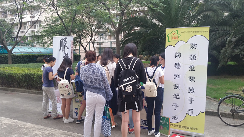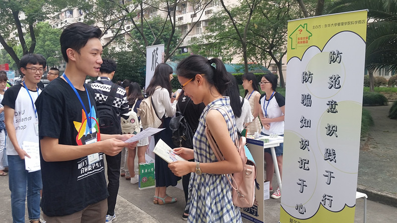 在大一新生入学之际,为了提高新生安全防范意识,有效阻止校园诈骗情况的发生,在学院分团委的指导下,学院科学商店与学生会联合举办了防金融诈骗宣传活动。