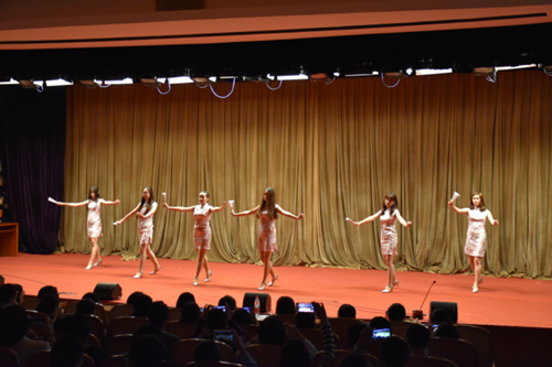 首先出场的是由学生会文艺部的干事带来的扇子舞《咏春》,婉转的音乐配合着文艺部成员们曼妙的舞姿,抓住了全场人的目光,引来一片片喝彩与掌声,开场表演很好地拉动了整个会场的氛围并且充分展示了bwin·必赢唯一官网学生的青春风采。