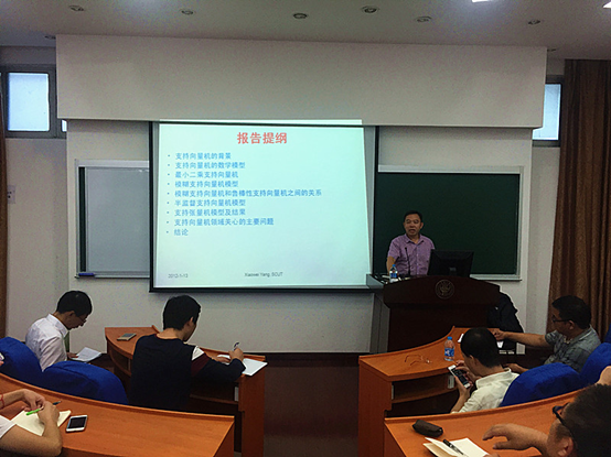 杨教授指出,支持向量机领域关心的主要7大问题有:大规模非线性分类和回归问题、非凸优化的快速求解、带噪声的模式识别、在线学习、张量核函数的构造、张量降维和张量分解在实际问题中的本质等。杨教授期望在座的研究生可以关注数学需求,提出实际问题蕴含着丰富的数学需求,对实际问题的关注有助于数学理论的深入发展。