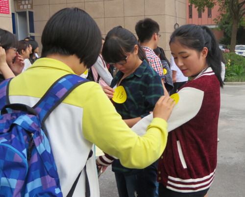 活动当天,工作人员早就做好各项准备,时刻迎接同学们的到来。许多同学刚考完微积分就背着书包冲到了签到处。下午十六时,游戏正式开始!参赛者疯狂地冲向教室、操场,解锁新地图,开启新关卡,你划我猜、两人三足、白纸造塔、蒙眼喂食、传吸管……游戏大多并不困难,但都需要组员之间相互配合。很快,许多小组的首个游戏完美通关,他们迫不及待地将手伸进彩色的玉米粉堆,在本组的衬衫上重重一掌,烙下第一个胜利的印记。