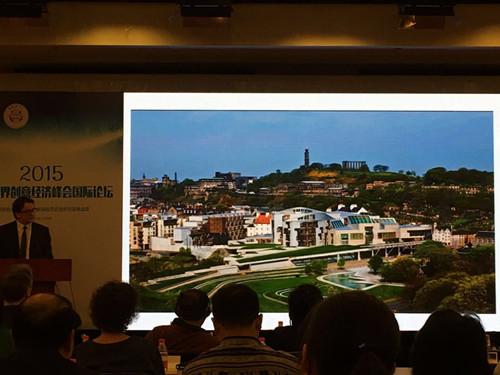 第一位上台演讲的是爱丁堡市政府博物馆和艺术馆主任Frank Little,其演讲主题是“A Creative City is a Successful City”,虽然存在语言障碍,但我们仍被爱丁堡的美景及文化深深吸引。第二位上台演讲的是四川省旅游局副局长赵波,其演讲主题是“互联网+时代下的旅游业创意发展”。赵老师以三个事件引出今天的演讲主题:互联网时代与传统时代对旅游业影响的差异,事件一:17家大型旅行社集体断供途牛;事件二:华住“断供”三大OTA;事件三:湖南旅游饭店协会携19家酒店炮轰去哪儿违约。并以四个案例说明“互联网+”对旅游产业结构与商业模式的影响,案例一:创意发展旅游商品;案例二:基于咨询服务的商业模式创新——易游天下旅行规划师;案例三:基于导游的商业模式创新——金牌导游:案例四:基于周边游的商业模式创新——周末去哪儿玩。第三位上台演讲的是上海九木传盛品牌推进机构董事长、中国2010世界博览会吉祥物海宝主创人员之一的邵隆图,其演讲主题是:我的创意观,邵老师的演讲掀起了全场的高潮。他认为创意就是再定义,其创意观可以用九条加以概括:第一,洞察人性,研究市场需求;第二,找对人,说对话,做对事;第三,熟悉变新鲜,新鲜变熟悉;第四,简单变复杂,复杂变简单;第五,无序变有序,有序变无序;第六,无所谓好坏,只是有差异;第七,旧元素,新关系,合适就行;第八,创造新标准,制定新规则(创新=创意产品+执行+推广);第九,提高生产力,增强竞争力;第十,创意变生意,才更有意义。72岁高龄且身患癌症刚做完大手术的邵老师,以其乐观的生活态度,幽默风趣的演讲风格,赢得了阵阵掌声。第四位上台演讲的是来自荷兰的GIIC中国区执行总裁、设计师Fleur Loudon,其演讲主题是:“The 9 Little Streets Phenomenon in Amsterdam, an opportunity for the Chinese Designer. ”。第五位上台演讲的是上海裔绘(时尚)电子商务有限公司CEO姜蓓艺,其演讲主题是:“裔绘时尚创新模式:互联网让传统服装思维飞起来”。姜老师以自己的公司为例阐明了如今互联网对传统服装业产生了巨大影响,互联网为裔绘带来了时尚创新模式,改变了传统服装思维。第六位上台演讲的是Vision Textiles and Waste 2 wear创始人、执行总裁Monique Maissan,其演讲主题是:“Textile Products Made from Recycled Plastic Bottles”。Monique Maissan总裁为我们介绍了一种创新的产品:用可循环的塑料瓶制成的纺织品,其强调生态环保的重要性。第七位上台演讲的是卡枚连品牌创始人兼CEO范玥婷,其演讲主题是:“卡枚连女性圈的文化创意故事”。范老师的演讲轻松活泼,她站在女性的角度上为我们带来了一些关于卡枚连的文化创意故事。最后一位上台演讲的是bwin中国官方网站bwin·必赢唯一官网学术委员会主席孙明贵教授,其演讲主题是:“怀旧文化的消费行为研究与应用”。