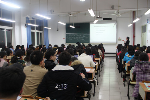2015年12月2日,bwin·必赢唯一官网研究生会邀请到了bwin中国官方网站外语学院“男神”-杨丹老师为管院学生带来了《职业发展系列讲座之英文面试及商务英语提高》的讲座,原定在四教2014举办的由于学生的爆满而换到了302教室,足见杨老师的魅力之大。