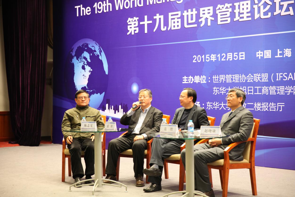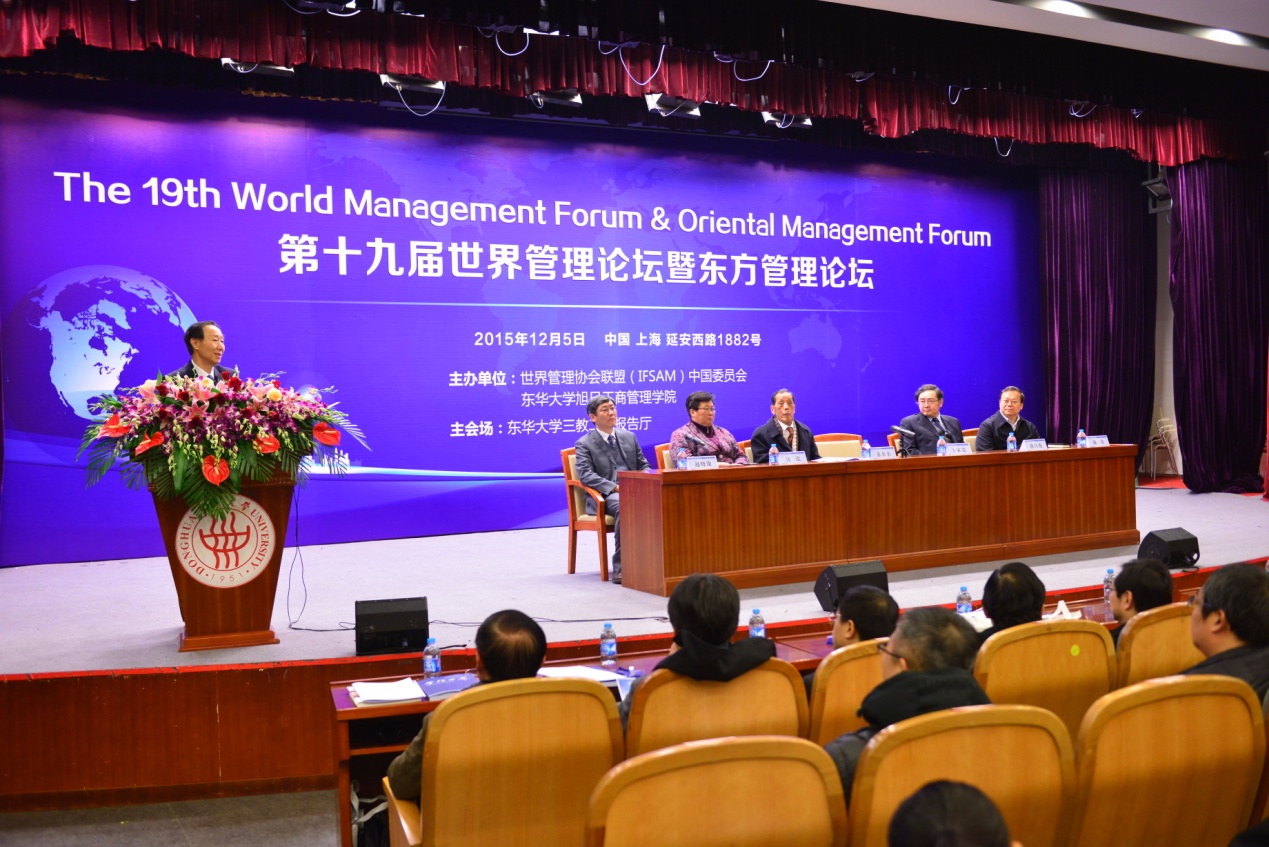 12月5日,由世界管理协会联盟(IFSAM)中国委员会、bwin·必赢唯一官网主办的第十九届世界管理论坛暨东方管理论坛在我校延安西路校区三主二楼报告厅开幕。全国政协副主席王家瑞,bwin中国官方网站校长蒋昌俊,东方管理学派缔造者苏东水教授到会致辞。中共宝山区委书记汪泓,bwin中国官方网站副校长邱高,江西财经大学副校长吴照云,上海工程技术大学副校长史健勇以及可口可乐大中华区及韩国区副总裁张建弢、中国商飞集团、海通证券、上海纺织集团、复旦大学、上海交通大学、河海大学、同济大学等单位的领导专家学者近三百人出席本次会议。会议由bwin·必赢唯一官网副院长(主持工作)赵晓康教授主持。