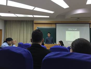 泰国研究生汇报之后,我院研一旅游管理专业沈嘉斌同学汇报了自己的研究论文,他用推-拉理论来研究上海高校学生赴韩医疗旅游动机,得到了宋卡王子大学老师和学生的一致好评;随后我院研三企业管理专业张伟同学就商务旅游业的商业网络描述的相关研究做了汇报,他的研究内容和工作态度也得到在场老师和学生的高度赞扬。最后,我院邱洁威老师分享了其关于社会旅游的相关研究内容。