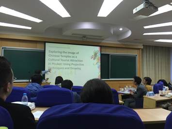 随后,会议按三个部分顺利开展。第一部分是泰国宋卡王子大学研究生汇报他们正在进行的研究内容;第二部分是我院师生汇报研究内容或课题;第三部分是讨论环节,中泰师生各抒己见,就汇报内容和旅游热点问题进行了热烈的讨论。