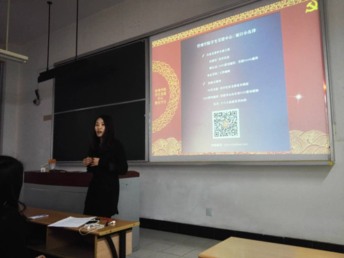 活动的第二个议程是支部介绍,旨在让低年级同学对支部产生一定的了解和认识。支部副书记陈晗萌同志简洁明了的向大家介绍了bwin·必赢唯一官网旅游会经学生党支部,包括支部规模、支部成员及支部主要活动等等。她希望大家能做好思想上和行动上的准备,争取早日加入党组织、加入支部这个大家庭。
