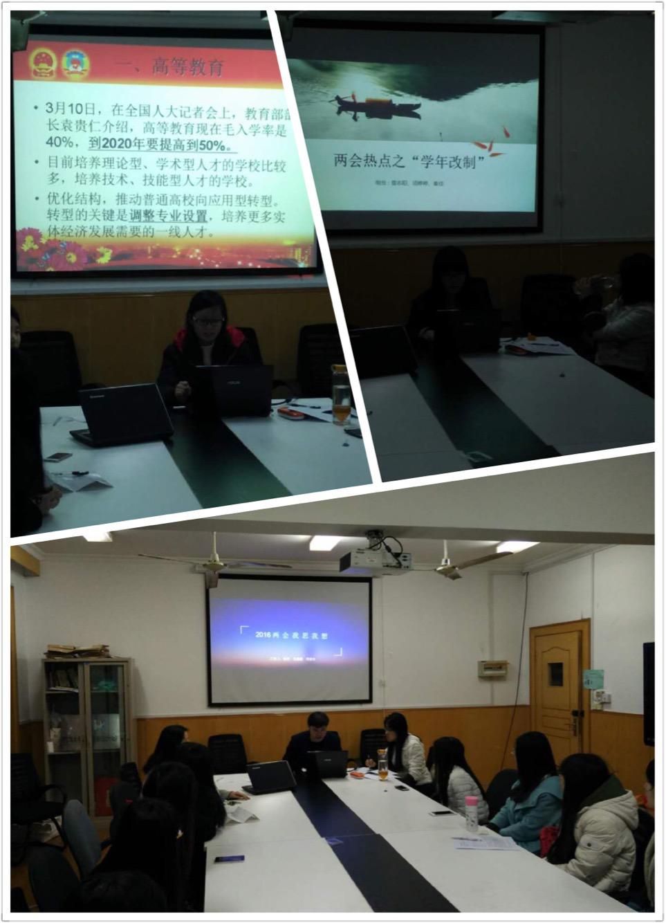 此外,在旅游会经学生党支部、会计学生党支部等的党章学习小组活动中,各积极分子也结合了今年的“两会”热点问题发表了自己的看法,有的积极分子还汇报了近期在党校的学习感悟。