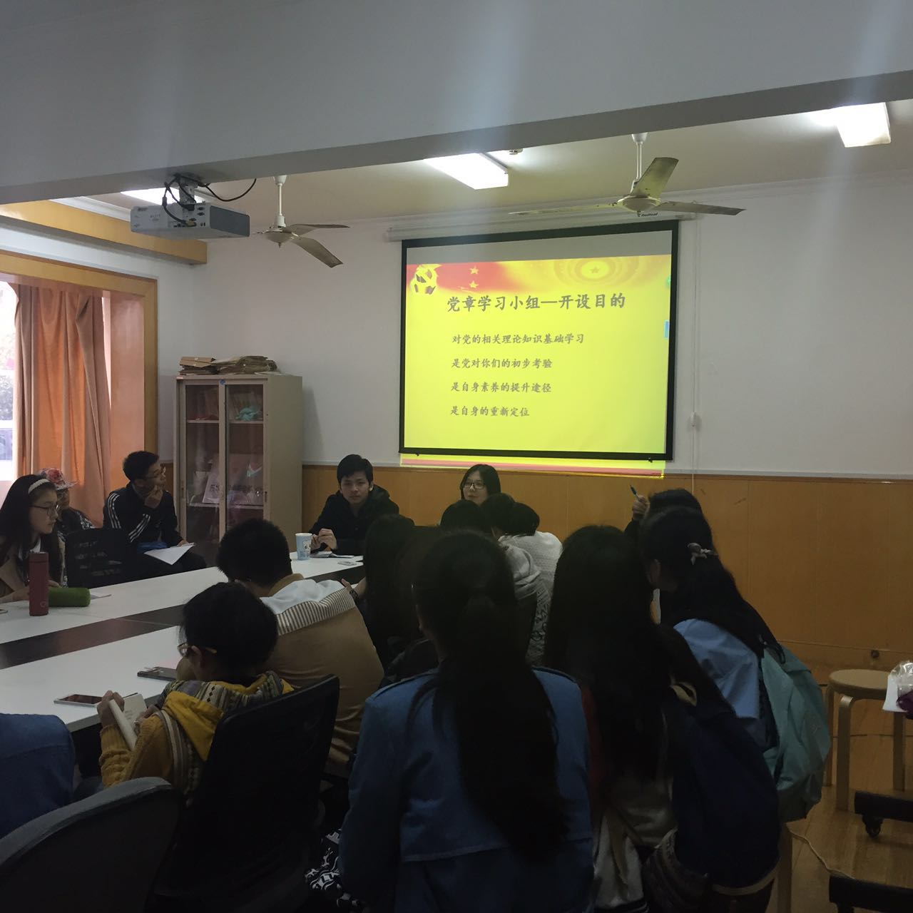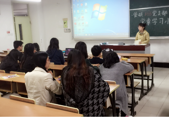 经济第二学生党支部结合最近的社会热点问题,以小组合作展示PPT的方式让各位积极分子阐述了对各社会热点问题的看法,考察了积极分子们对时事政治的敏感度以及对习总书记系列讲话精神的理解。在管科学生党支部党章学习小组活动中,支部副书记王京告诉同学们对党的知识理论学习要放在平时,而不是在考试前临时抱佛脚;作为在校大学生,大家应该从学习、服务同学、志愿者活动、社会实践四个方面,努力锻炼自己,以实际行动践行系列讲话精神。