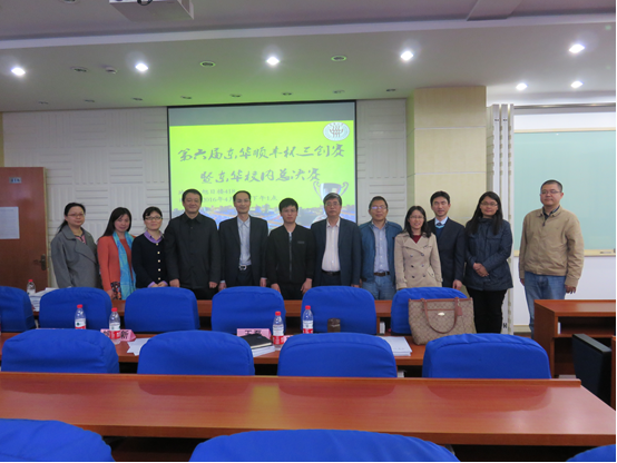 本次比赛26支参赛队伍被分成三个组,分别在旭日楼418、301、302三个答辩场进行答辩,在答辩现场,各个团队代表上台通过PPT,实物展示等形式进行现场答辩以及成果展示。在约三个小时激烈的答辩,各支队伍各展风采,经评委老师的精心点评指导,根据参赛队员展示与回答,评委老师为每一支参赛队伍打分,最后由工作人员汇总分数。