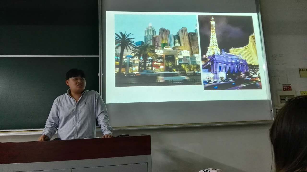 第一个上台的是美国迪士尼项目张中正同学,他详细介绍了参加此项目需要做的准备工作以及注意事项。迪士尼项目学习和实习是同时的,所以参加此项目期间需要辗转不同地点,在认真学习和工作的同时还有机会欣赏当地风景,品尝各色美食,是一段受益匪浅的经历,让人不禁心生向往。