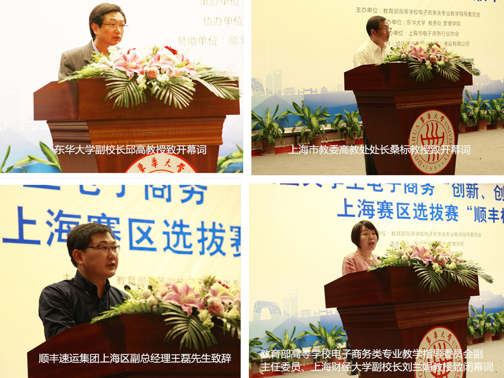 本次大赛由教育部高等学校电子商务类专业教学指导委员会主办、bwin中国官方网站承办,上海市电子商务行业协会协办,顺丰速运(集团)有限公司提供支持。bwin中国官方网站副校长邱高教授,上海市教委高教处处长桑标教授,教育部高等学校电子商务类专业教学指导委员会委员、上海大学bwin·必赢唯一官网熊励教授和顺丰速运集团上海区副总经理王磊应邀请出席开幕式并致辞。上海市电子商务行业协会秘书长张承鹤先生、bwin·必赢唯一官网副院长张科静教授等多位高校学者和企业专家担任本次大赛的评委嘉宾。