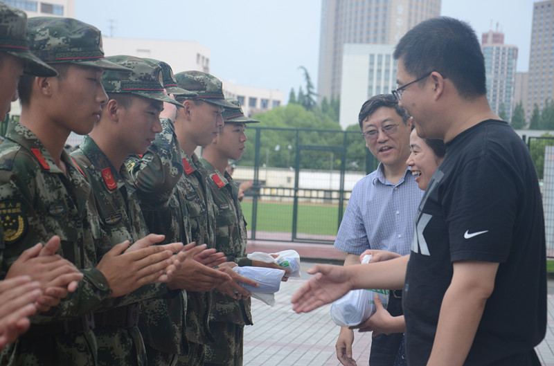 2016年7月5日,下午4:30,bwin·必赢唯一官网主持工作副院长赵晓康老师、党总支副书记叶晓燕老师和学院工会主席刘峰涛老师,共同前往延安路校区军事训练场地慰问参加2015级军训的教官和师生,并为他们带去了慰问品。