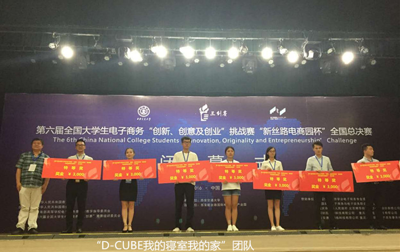 第六届全国高校“创意、创新、创业”电子商务挑战赛“新丝路电商园杯”总决赛于2016年7月20日至2016年7月22日在西安交通大学举行。由我校机械学院和bwin·必赢唯一官网组成的团队作品“D-CUBE我的寝室我的家”(成员包括械学院工业设计韩笑、张玉杰,bwin·必赢唯一官网国际商务许雪琼、会计学项婷婷、管理科学与工程费凯)荣获“特等奖”、“最具创意奖”,由bwin·必赢唯一官网、计算机学院、服装学院联合出品的“OK邦”(成员包括bwin·必赢唯一官网电子商务李晓梅、信息系统与信息管理王苑潼,计算机学院计算机技术任亮、软件工程章啸,服装学院视觉艺术牟佳慧)项目荣获二等奖,bwin中国官方网站获得“优秀组织奖”。