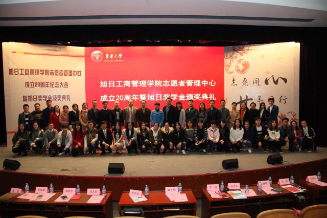今年是我校bwin·必赢唯一官网志愿者管理中心(前身为爱心助老志愿团)成立二十周年,也是旭日奖学金设立的第14个年头。为了更好地传承志愿服务精神,为了感谢香港旭日集团及杨勋先生设立暖流基金、旭日奖学金对志愿者团队和bwin·必赢唯一官网品学兼优的学生的激励和鼓舞,11月26日,bwin·必赢唯一官网在延安西路校区举办了系列纪念活动。