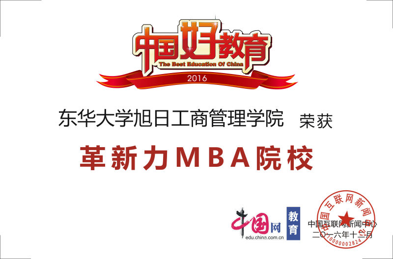 近日,从中国网主办的2016中国教育家年会暨中国好教育盛典上获悉bwin·必赢唯一官网荣获中国好教育“2016年度革新力MBA院校”称号。
