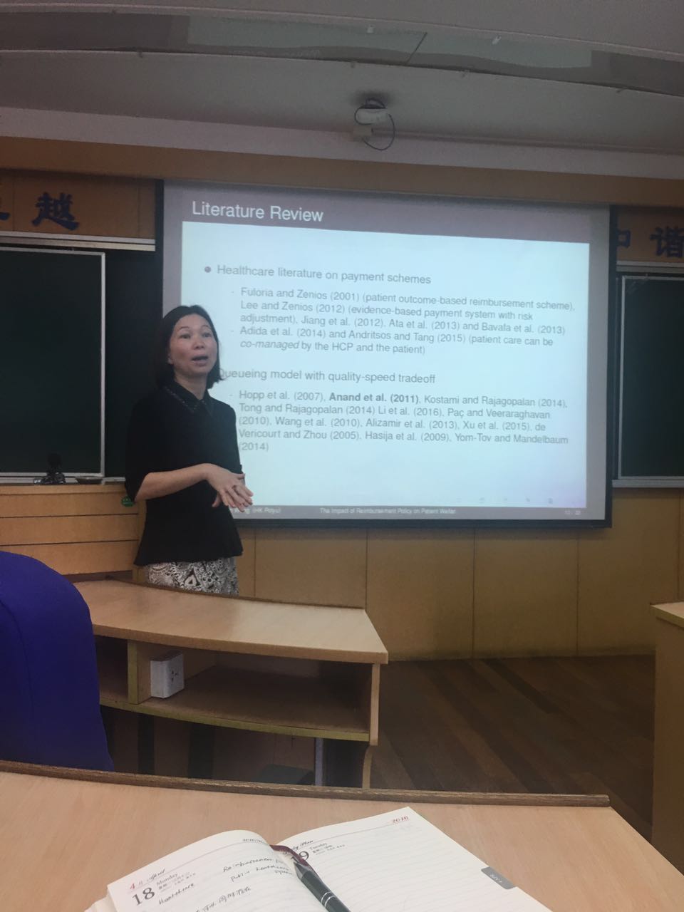 6月26日上午9:30在旭日楼306教室,香港理工大学海运及物流系副教授汪玉兰为bwin·必赢唯一官网的师生们做了一场题为“The Impact of Reimbursement Policy on Social Welfare, Revisit Rate & Waiting Time in a Public Health”的讲座,虽然已临近期末,但如此与生活紧密相关的主题仍吸引了许多师生到场聆听。