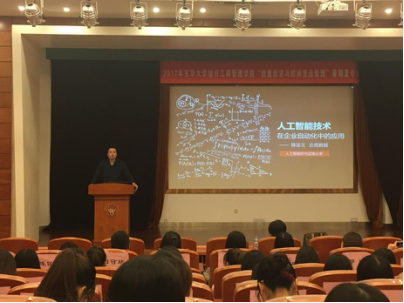 盛大文学首席数据官、国际计算机学会(ACM)会员、达观数据创始人陈运文博士首先从企业实践角度出发,结合自身经验为我们带来一场名为《人工智能技术在企业自动化中的应用》的演说。陈博士运用儿童学习算数、泰坦尼克号、AlphaGo等通俗易懂的例子为我们讲解了人工智能发展、建立与实施过程,深入浅出,让同学们在学习思考过程中发现人工智能与大数据环境之下依旧有很多新的契机。“人们总是会高估一项新技术短期的成就,人们总是会低估一项新技术长期的影响”,陈运文博士提到,我们难以预测未来会发生什么,人工智能将人们从脑力劳动中解放出来,也将带给人们巨大的机遇。