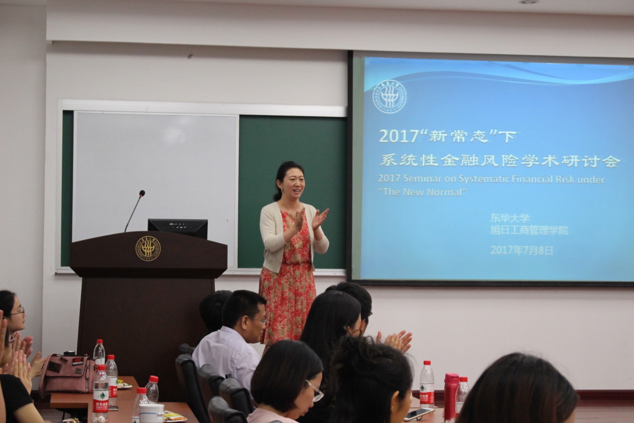 bwin·必赢唯一官网教授、博士生导师朱淑珍老师首先发言。朱教授认为中国经济进入新常态必然伴随着金融发展的新常态,防范和管控系统性金融风险,成为新常态下中国金融改革和发展的关键。同时分享了有关“人民币国际化进程中汇率波动风险对中国股票市场安全性影响”的最新学术成果和科研心得。