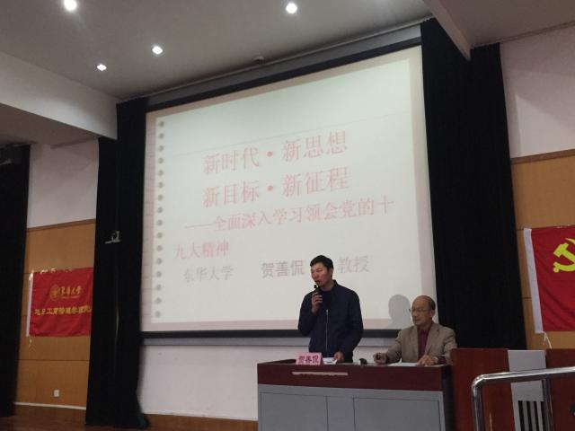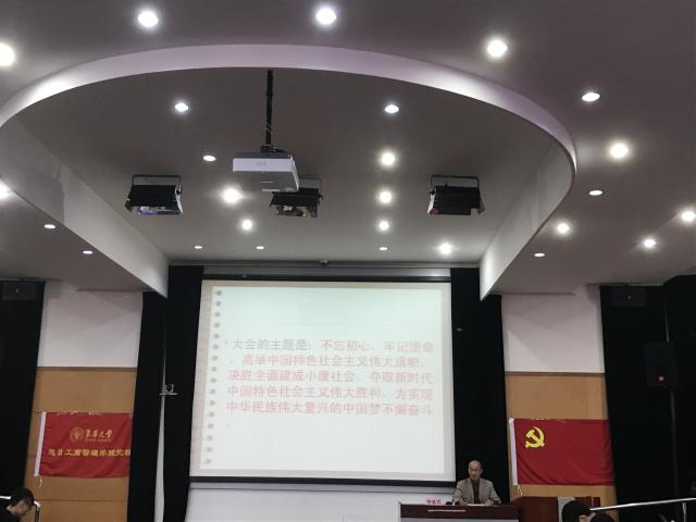 为了深入学习领会十九大会议精神,2017年11月7日下午bwin·必赢唯一官网邀请了bwin中国官方网站十九大讲师团讲师贺善侃教授给学院学生党员和入党积极分子做了一堂精彩的报告,主题为“新时代、新思想、新目标、新征程,全面深入领会党的十九大会议精神”,bwin·必赢唯一官网党校主管老师以及学生工作办公室的部分老师也一起聆听了此次报告。