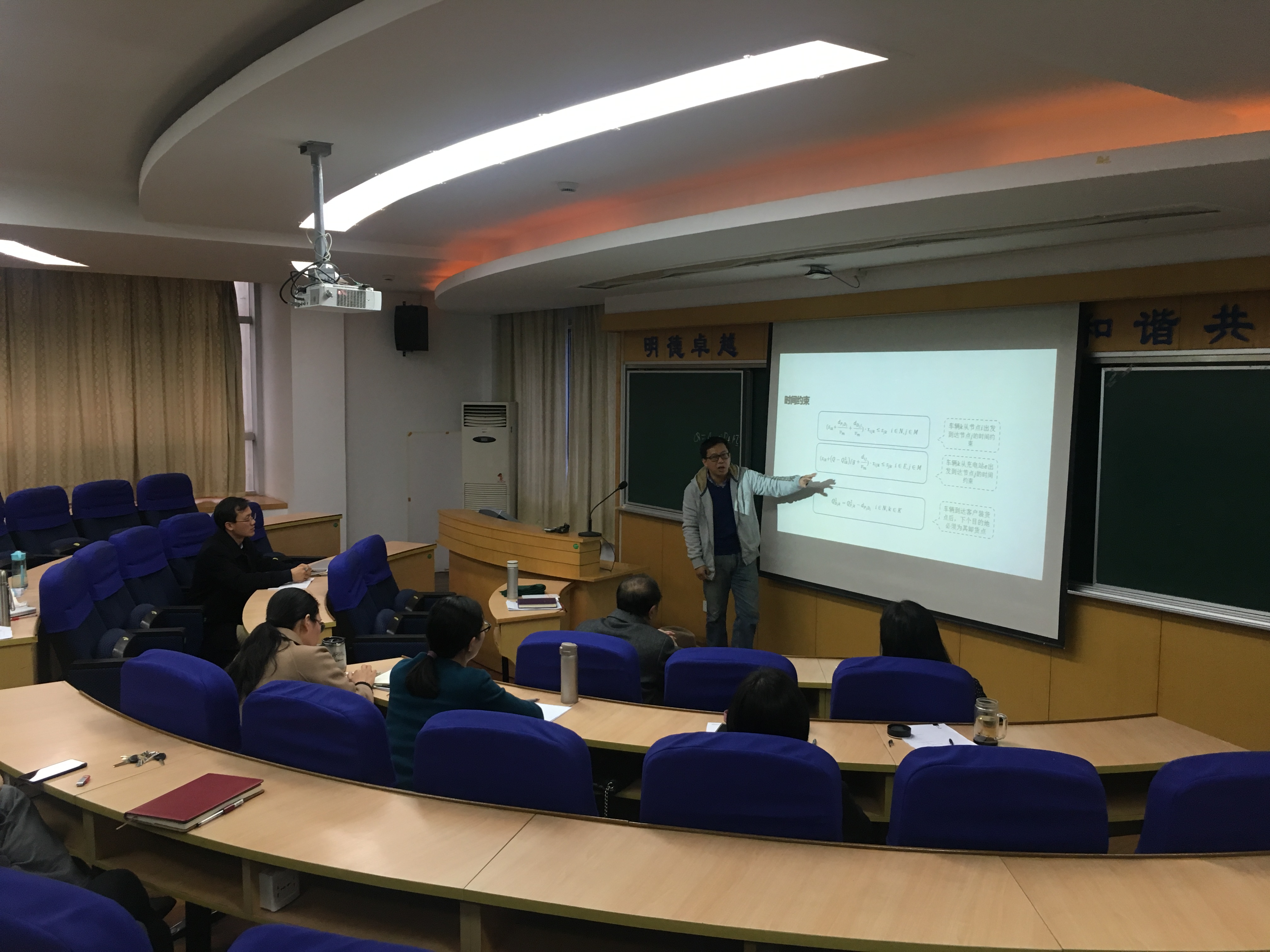 11月21日下午13:30的研讨会由沈滨老师主持,随后共四位老师进行了学术报告,依次为王晓峰老师的“考虑全球社会福利的供应链协同减排机制”,戴韬老师的“一对多交互式在线客户服务排队模型”,王长军老师的“声誉驱动下的O2O运营及其渠道整合:基于演化仿真的研究”以及贾永基老师的“电动汽车充电站选址和路径规划”。报告过程中,台下老师踊跃进行提问和讨论,现场气氛活跃。
