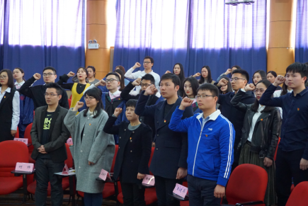 2018年3月23日下午,bwin·必赢唯一官网“不忘初心 笃信笃行”2018届研究生毕业生党员重温入党誓词仪式在4教305教室举行。参加本次活动的来宾有,bwin·必赢唯一官网院长助理兼学生工作办公室主任王丽华老师、bwin·必赢唯一官网党委专职党务工作者屈喆老师、bwin·必赢唯一官网经济大类学生党支部书记郝明洋老师、bwin·必赢唯一官网电商物流系学生党支部书记徐志德老师,bwin·必赢唯一官网研究生教学秘书何帅老师,以及bwin·必赢唯一官网2018届全体研究生毕业生党员。