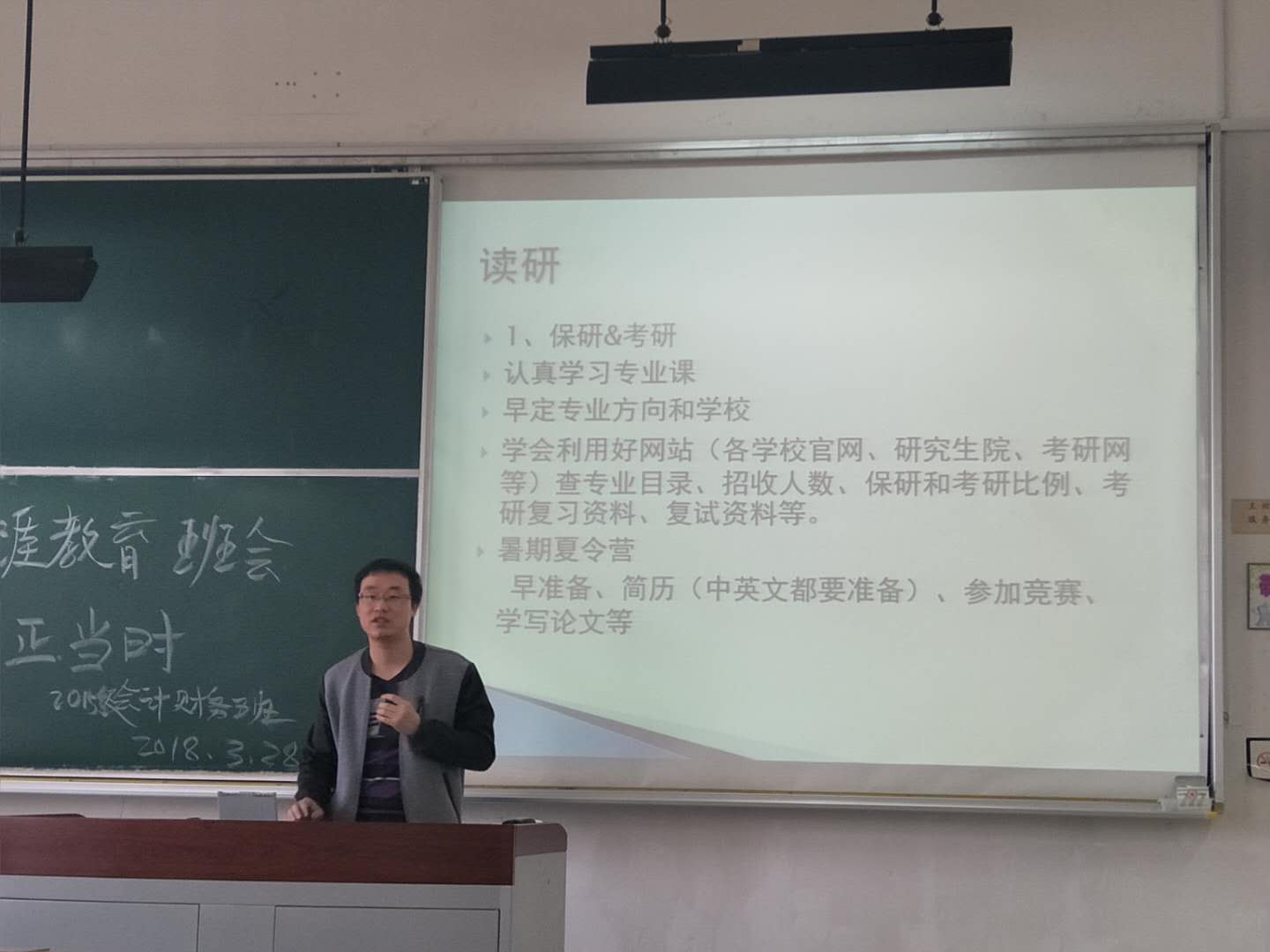2018年3月28日,会计系“职业生涯教育”主题班会在四教105教室开展。此次班会面向会计学专业、财务管理专业共四个班级的同学,由辅导员徐志德老师对各班上一学年的学习情况进行总结,中国电信上海公司人力资源部骆巍先生为同学们做出专业培养及职业规划方面的指导。