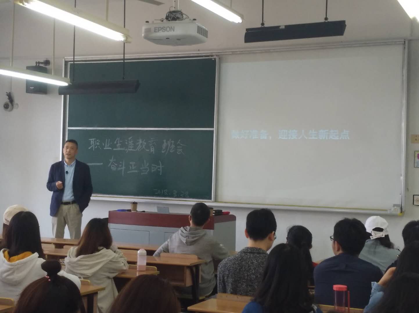 讲解完以上事项后,徐老师进行了简短的总结。接着由辅导员丁伟老师向大家简要介绍并欢迎中国电信上海公司人力资源部的骆巍先生给大家做职业规划方面的指导。