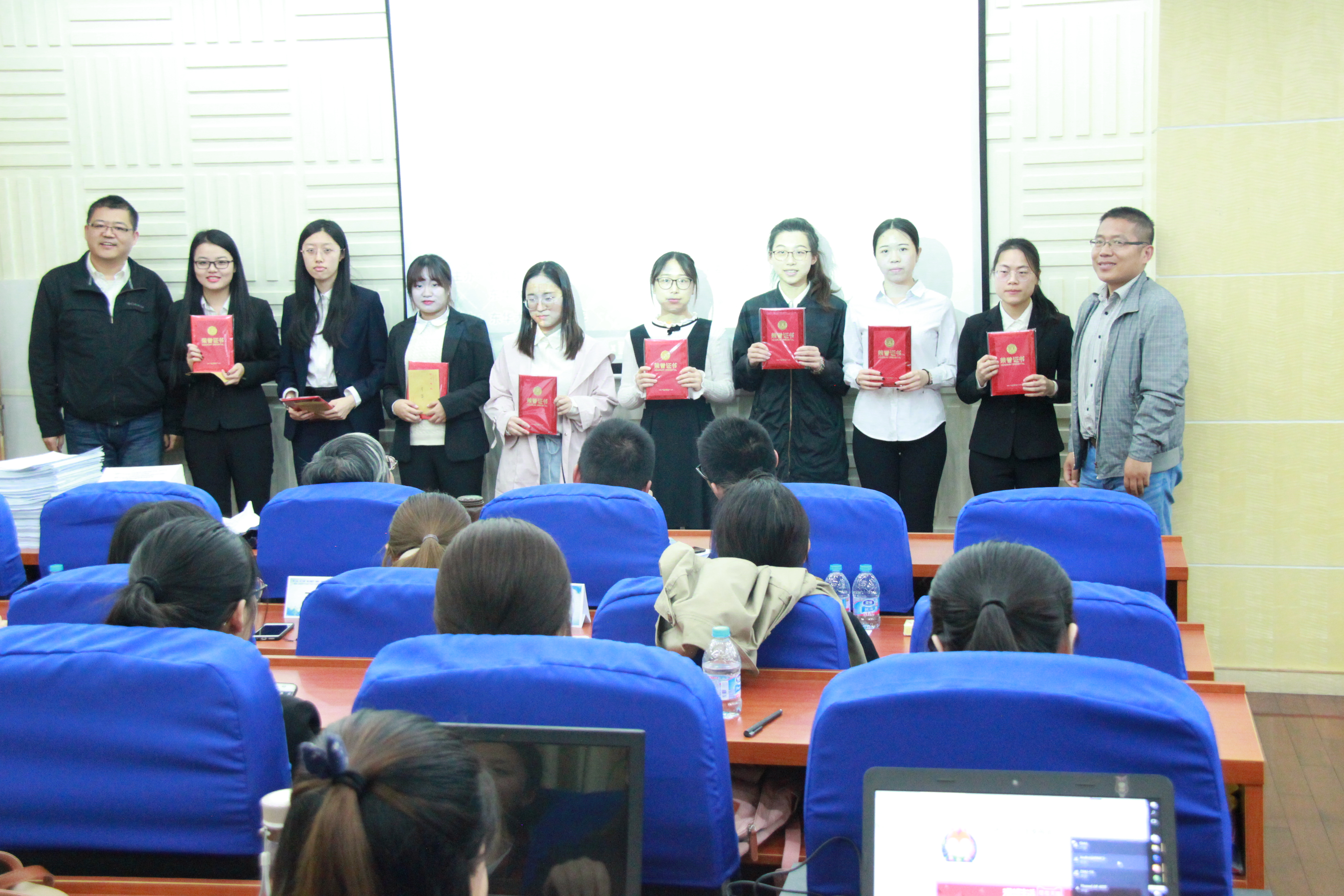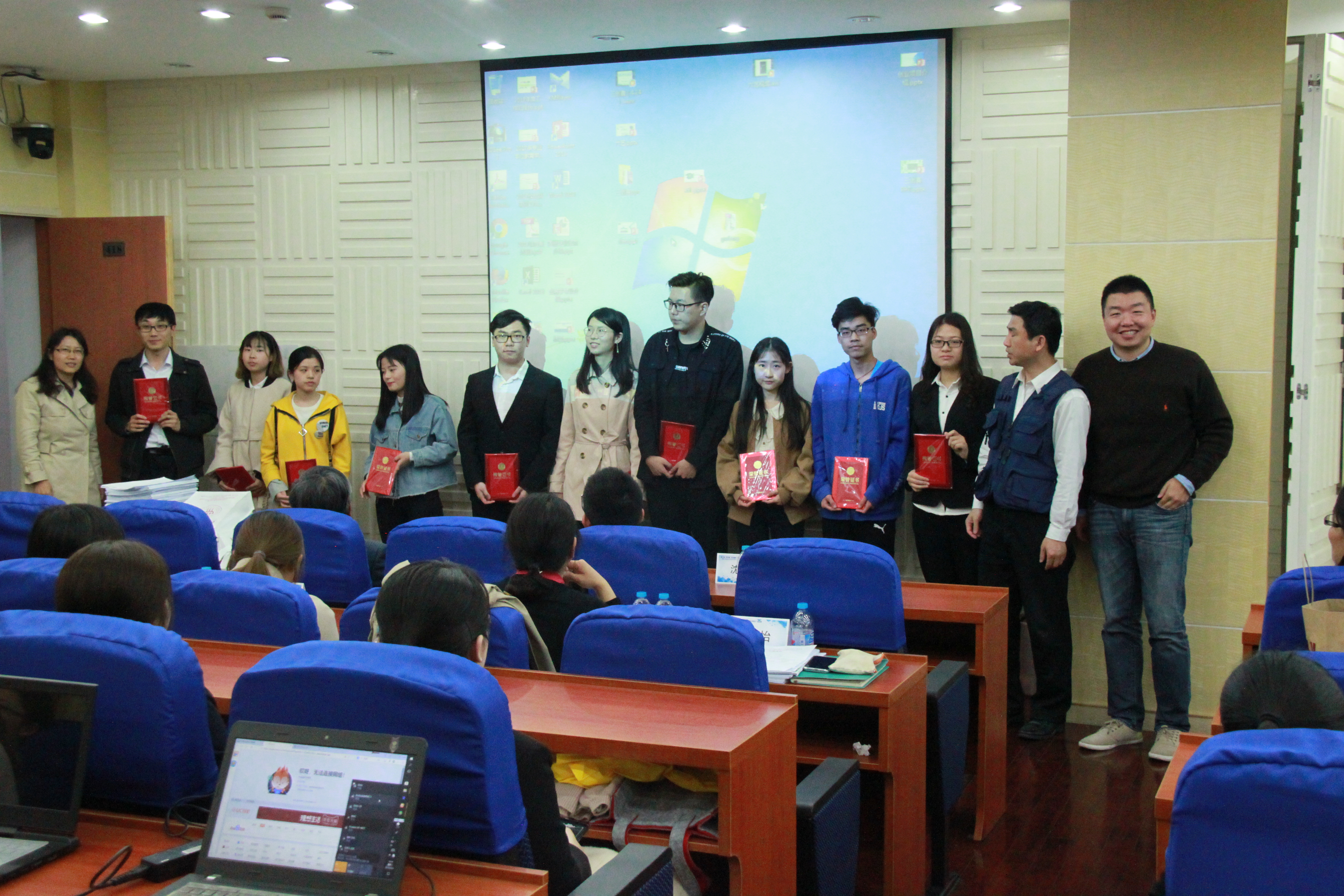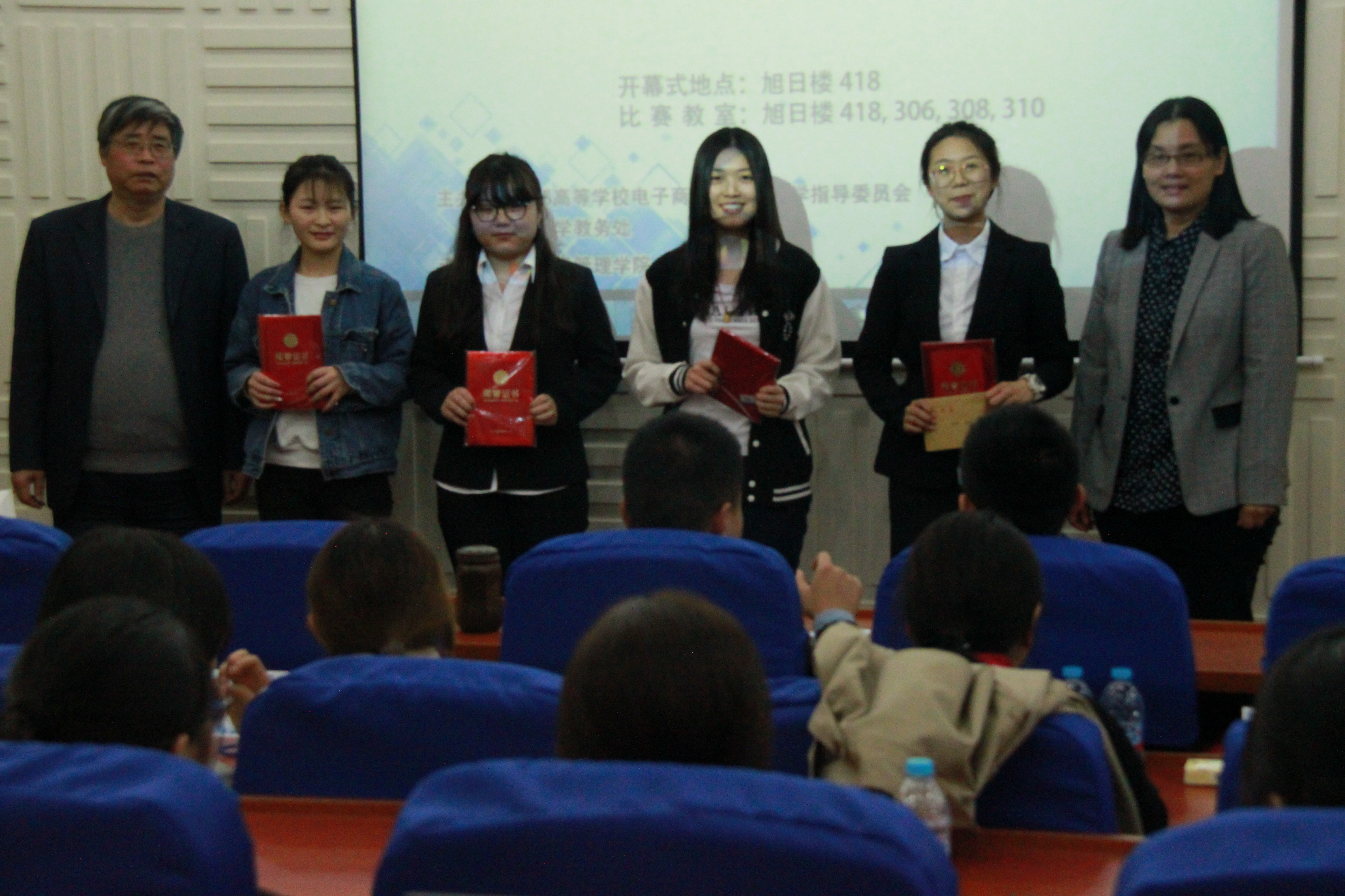 (荣获三等奖的队长与颁奖嘉宾合影留念)