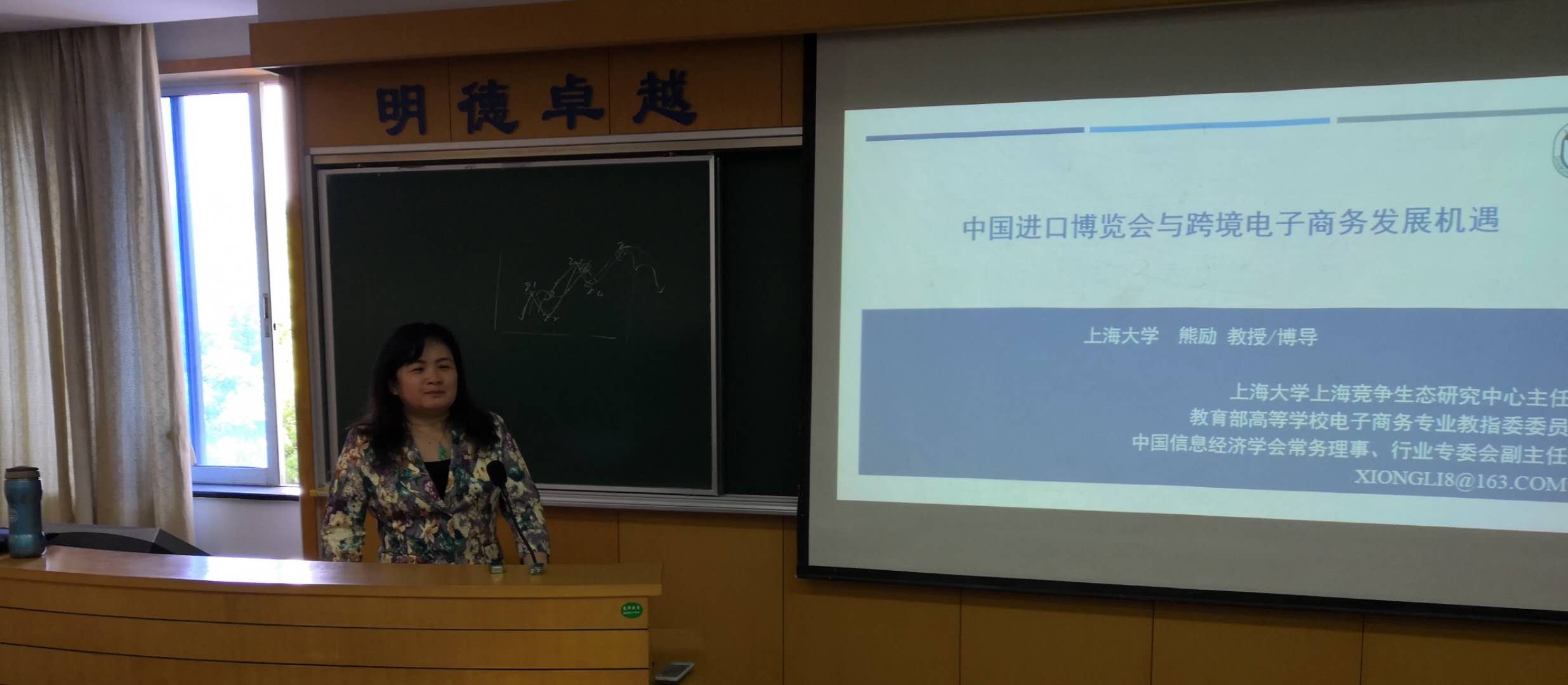 2018年5月10日下午3时,上海大学bwin·必赢唯一官网熊励教授为全院师生进行了一场题目为“中国跨境电子商务发展机遇”的学术报告会,学院师生济济一堂,认真聆听了报告。