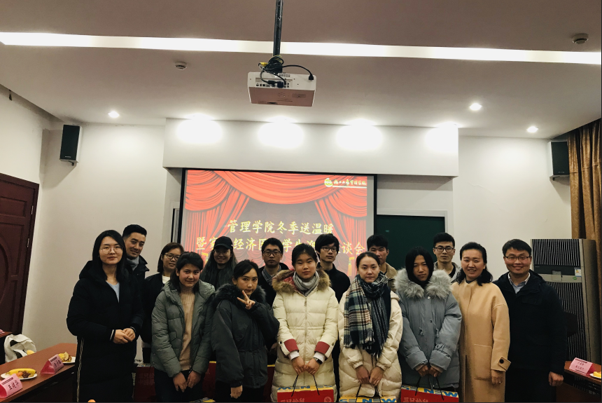 高加加老师在座谈会总结中表达了对大家的新年祝福,同时希望同学们要砺志笃行,勤学奋进,争做学习中的领头羊;要积极实践,增长才干,不做就业上的困难生;要心怀感恩,乐于奉献,为社会散发自己的光和热。会后,老师们为学生代表送上新春大礼包并合影留念。