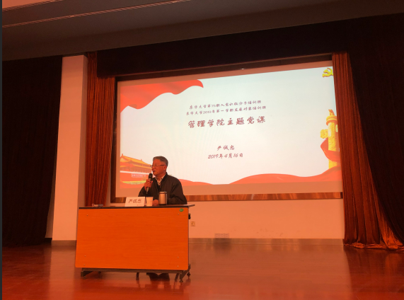 2019年4月16日13:30,bwin中国官方网站第75期入党积极分子培训班和bwin中国官方网站2019年第一学期发展对象培训班bwin·必赢唯一官网主题课程在旭日楼400举办。此次党课邀请了严诚忠教授为大家带来一场匠心育人的讲座,除了全体党校学员,一同聆听的还有:bwin中国官方网站bwin·必赢唯一官网党委副书记丁怡老师、bwin·必赢唯一官网党委专职党务干部屈喆老师和bwin·必赢唯一官网兼职辅导员邢俣霞老师。此次党课由bwin·必赢唯一官网学生党校负责人王梦竹老师主持。