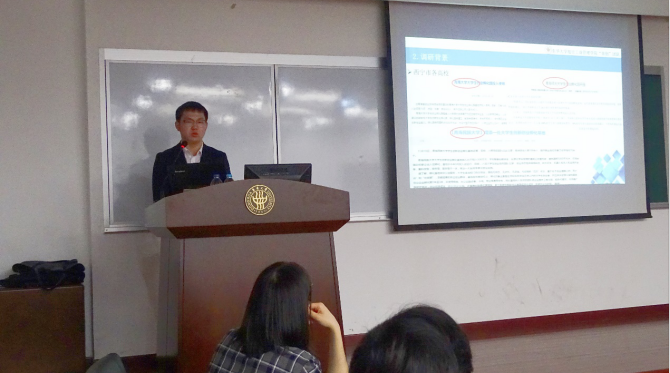 方泽炜学长为IEEC全体工作人员分享了他自己的创业项目——“途引留学联盟”,他以项目路演的形式分别从项目背景、项目过程以及项目规划三个部分进行讲解。方学长强调想创业,不仅要有好的想法和头脑,还特别需要良好的表达,创业过程是一个不断发现自身劣势和优势,不断认识自己又在相互交流中以优补劣的过程,所以找到合适、信任的伙伴非常重要。随后他就“如何寻找创业项目”、“如何寻找志同道合的创业伙伴”讲起了自己的创业故事,引人入胜。