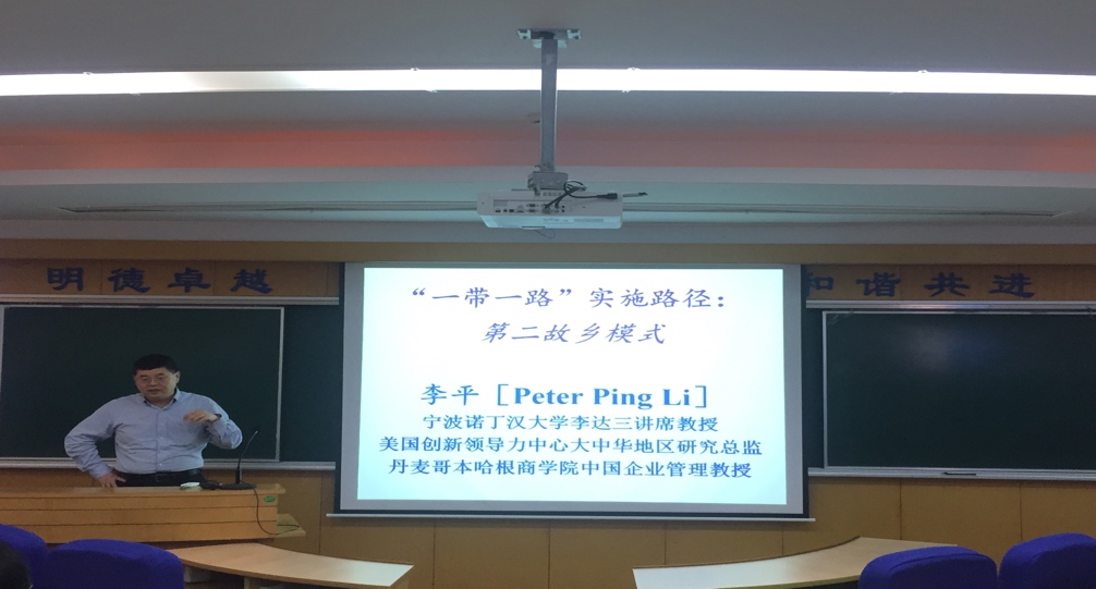 5月15日(周三)下午13:30,宁波诺丁汉大学李平教授在旭日楼306教室为bwin·必赢唯一官网师生进行了一场题目为“一带一路实施路径:第二故乡模式”的学术报告会,报告会由我院王雷教授主持。