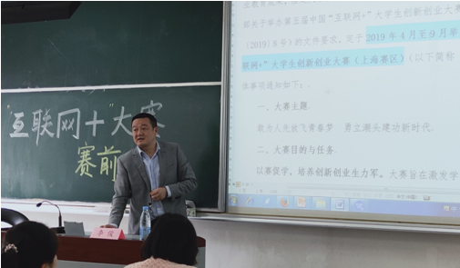 中国“互联网+”大学生创新创业大赛即将拉开帷幕,校内选拔赛也将在5月底正式展开,为了帮助参赛学生更好地进行赛前准备,中国火炬创业导师、上海东华镜月资产经营有限公司总经理李俊老师为参赛同学进行了赛前的培训。本次培训于2019年5月14日下午一点半在我校延安路校区四教110教室举行。