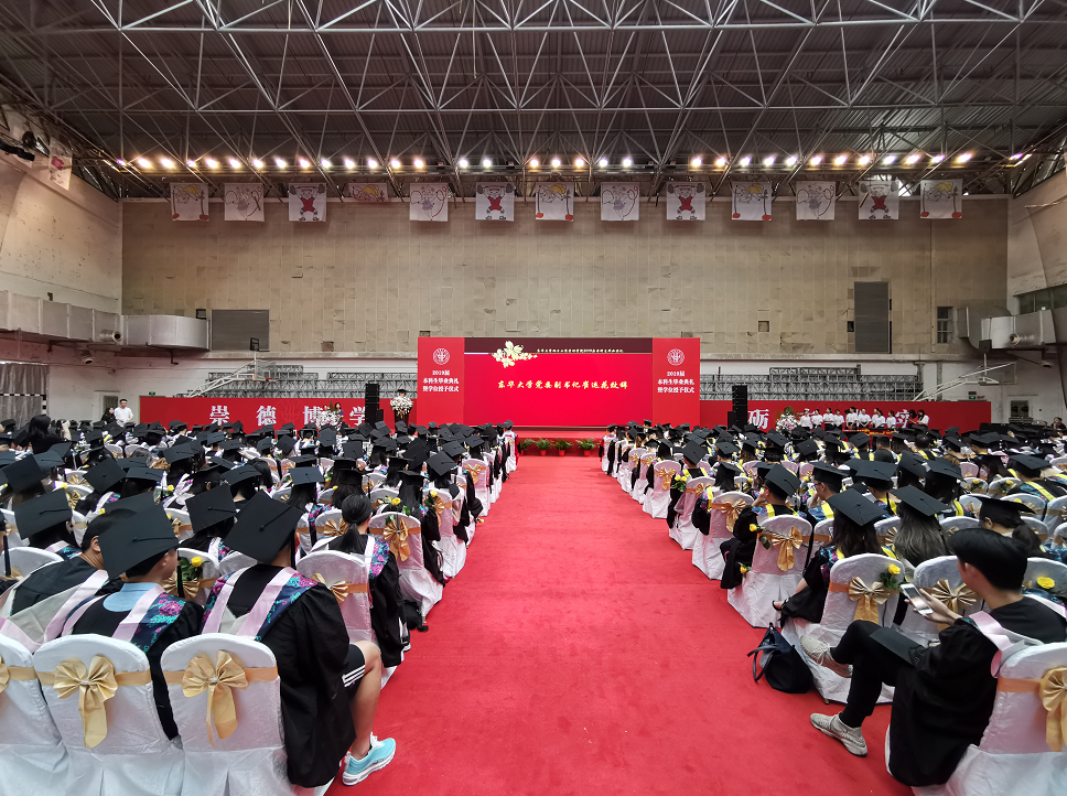 当天上午9:00,毕业生们在毕业留言版处签名,然后踏着毕业红毯,怀着激动兴奋,又眷恋不舍的心情进入体育馆。 此次毕业典礼由bwin·必赢唯一官网党委副书记丁怡主持。典礼在庄严的国歌声中拉开帷幕。
