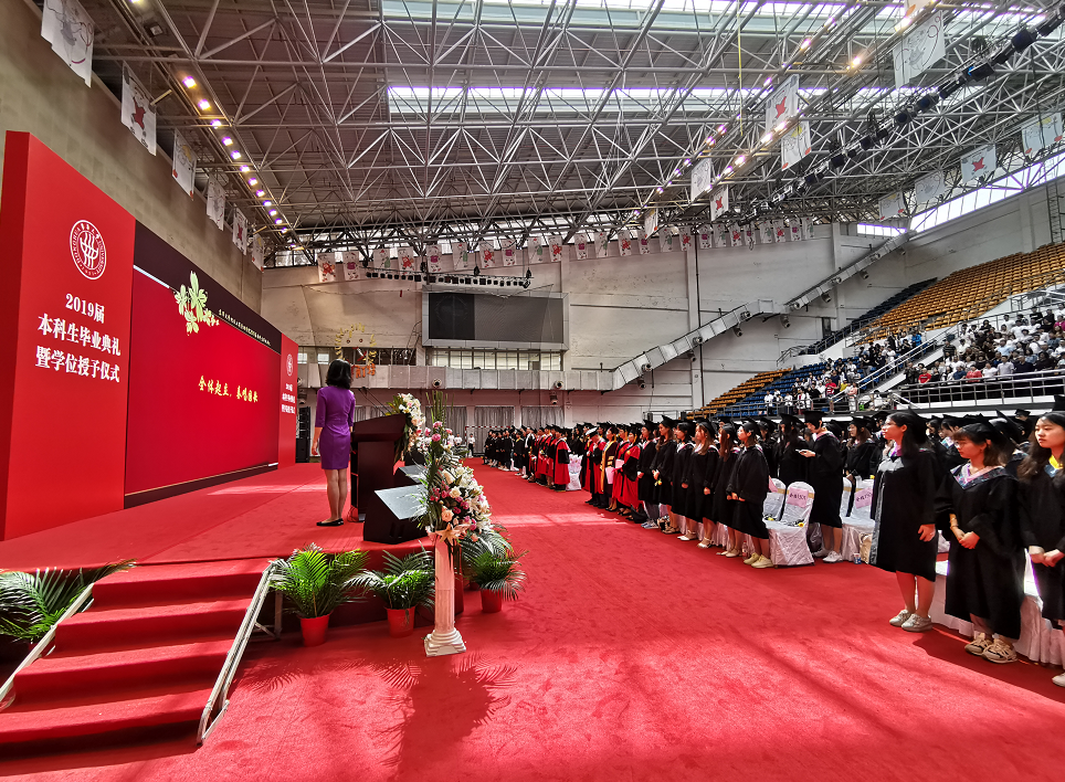 2019年6月25日上午,bwin·必赢唯一官网2019届本科生毕业典礼暨学位授予仪式在延安路校区体育馆隆重举行。bwin中国官方网站党委副书记崔运花、bwin·必赢唯一官网党委书记林文伟副教授、bwin·必赢唯一官网院长徐寅峰教授、bwin·必赢唯一官网副院长郑斐峰教授、bwin·必赢唯一官网党委副书记丁怡副教授、bwin·必赢唯一官网各系主任及部分教师代表出席毕业典礼。607名2019届毕业生和家长代表共同见证了这庄严的时刻。