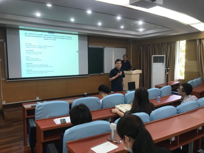 本次研讨会由郑斐峰副院长主持,学院党委书记林文伟、副院长徐琪、副院长杨帅到现场聆听报告。报告主讲人包括4位学院青年教师,分别是王雷、沈滨、周建亨和冯云婷老师,他们就各自最新的研究“The influence of supplier unilateral transaction-specific investments on international buyer opportunism”、“时尚奢侈品运营管理”、“基于销售量谎报的供应链审计及价格补贴策略”、“The market value of sustainable practices in the luxury industry: An identity mismatch and institutional theoretical perspective”等主题与到会师生进行分享,线下与线上观众提问问题踊跃,现场交流互动气氛热烈,研讨会持续了近3个小时,报告会结束后在场师生仍意犹未尽。