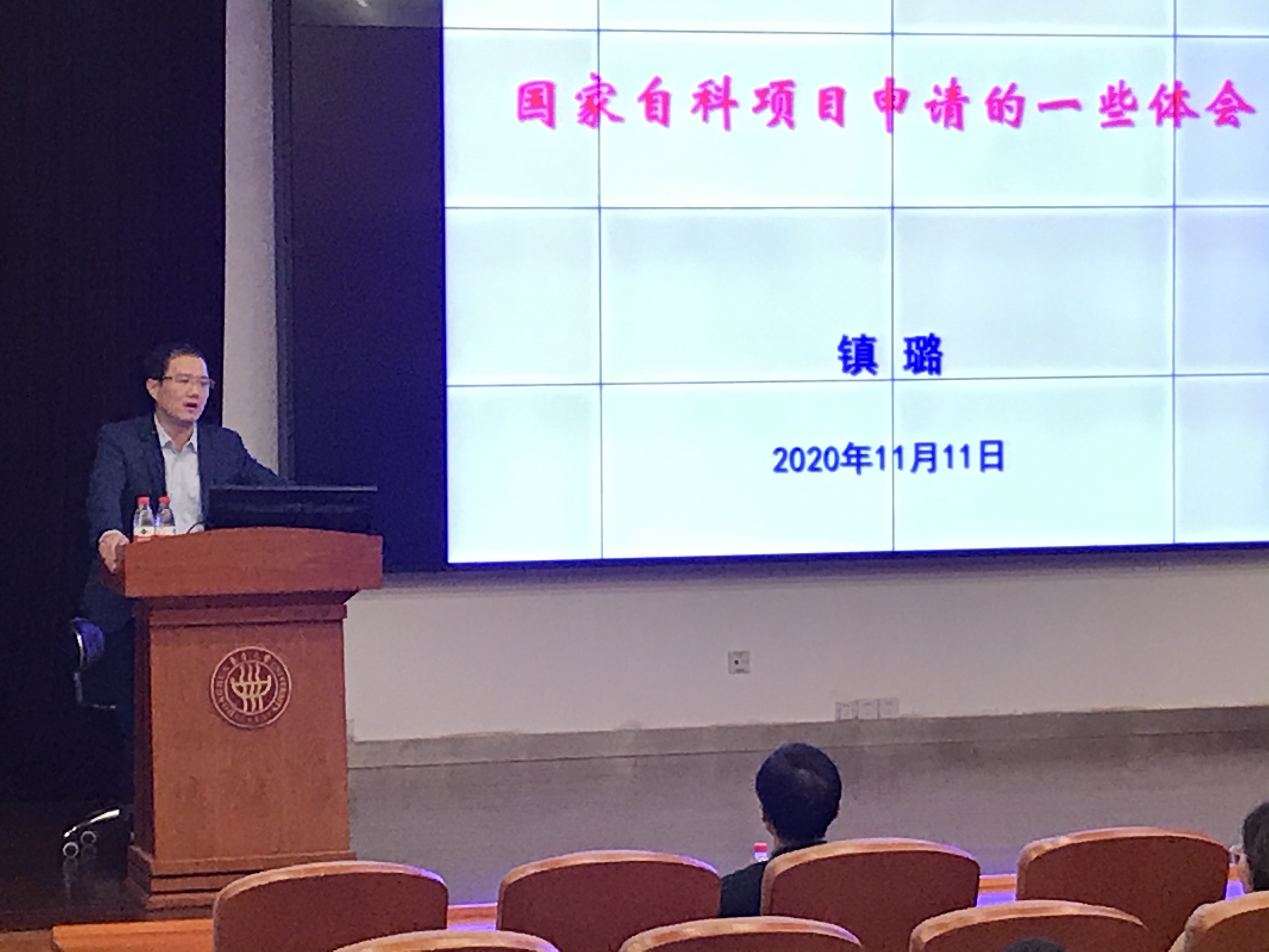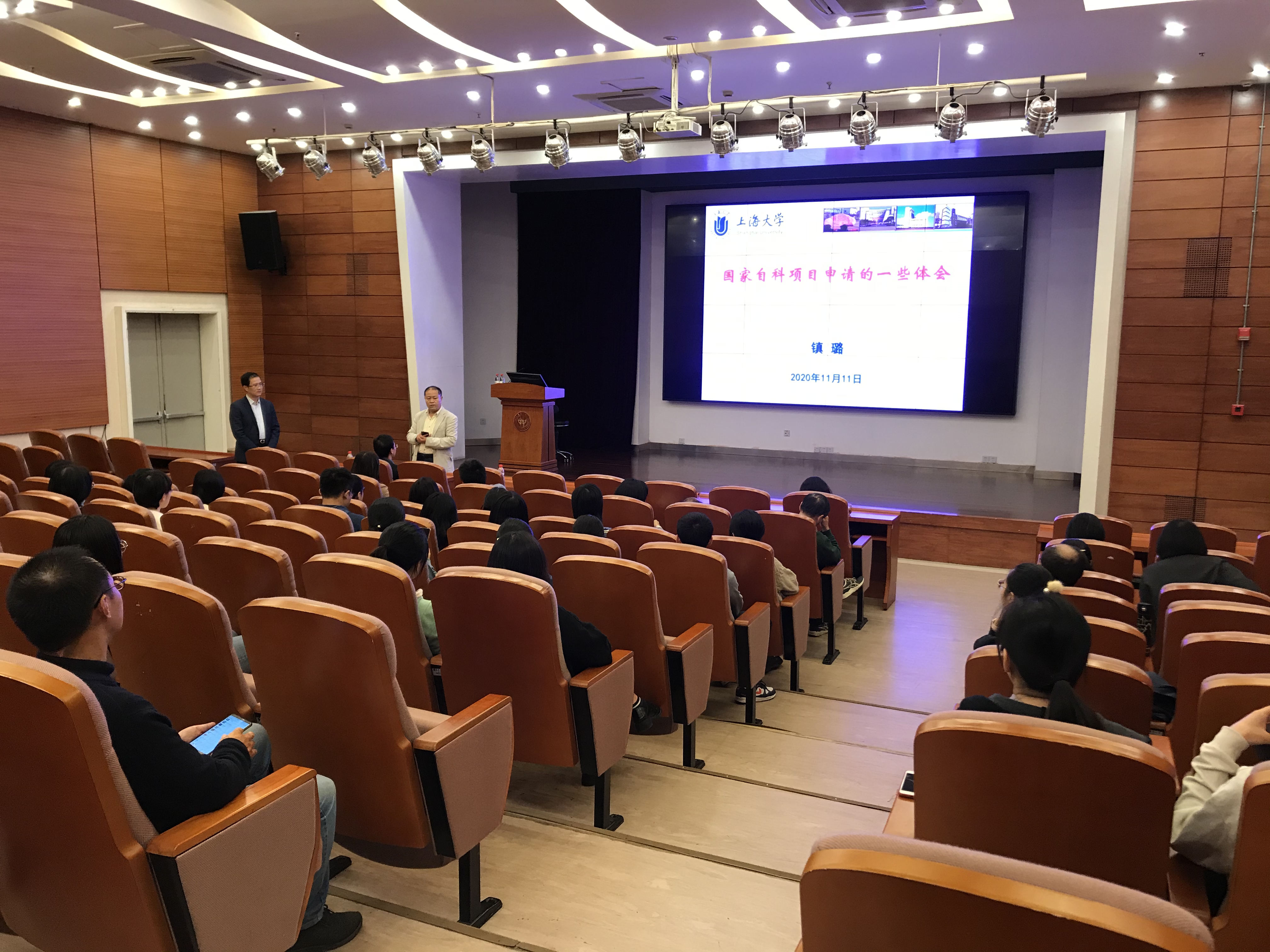 本次动员大会邀请到了上海大学bwin·必赢唯一官网镇璐院长做了精彩报告。镇教授从项目选题入手,用幽默的表述介绍了选题的关键,并就如何凝练核心科学问题做了详细阐述。最后结合研究目标与内容、研究方法与技术路线等方面分享了基金申请的成功经验和写作技巧,给在场的老师们提出了很多非常中肯的建议。