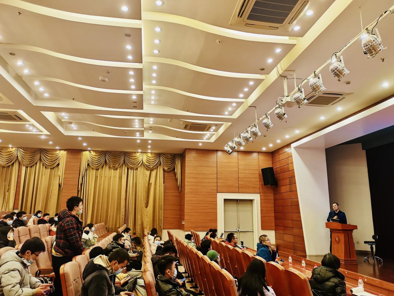 讲座互动环节,肖利华与现场同学亲切互动,勉励同学努力发挥想象力和创造力,学会对各行各业的问题进行重构,用新方法重新定义问题,努力做内心的追光者、时代的造梦者、未来的造风者。